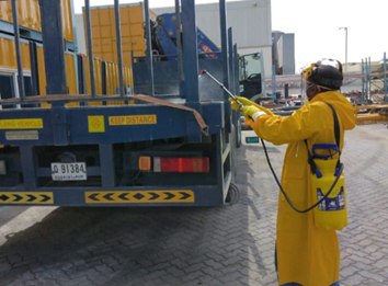 Sanitizing of equipment in the yards